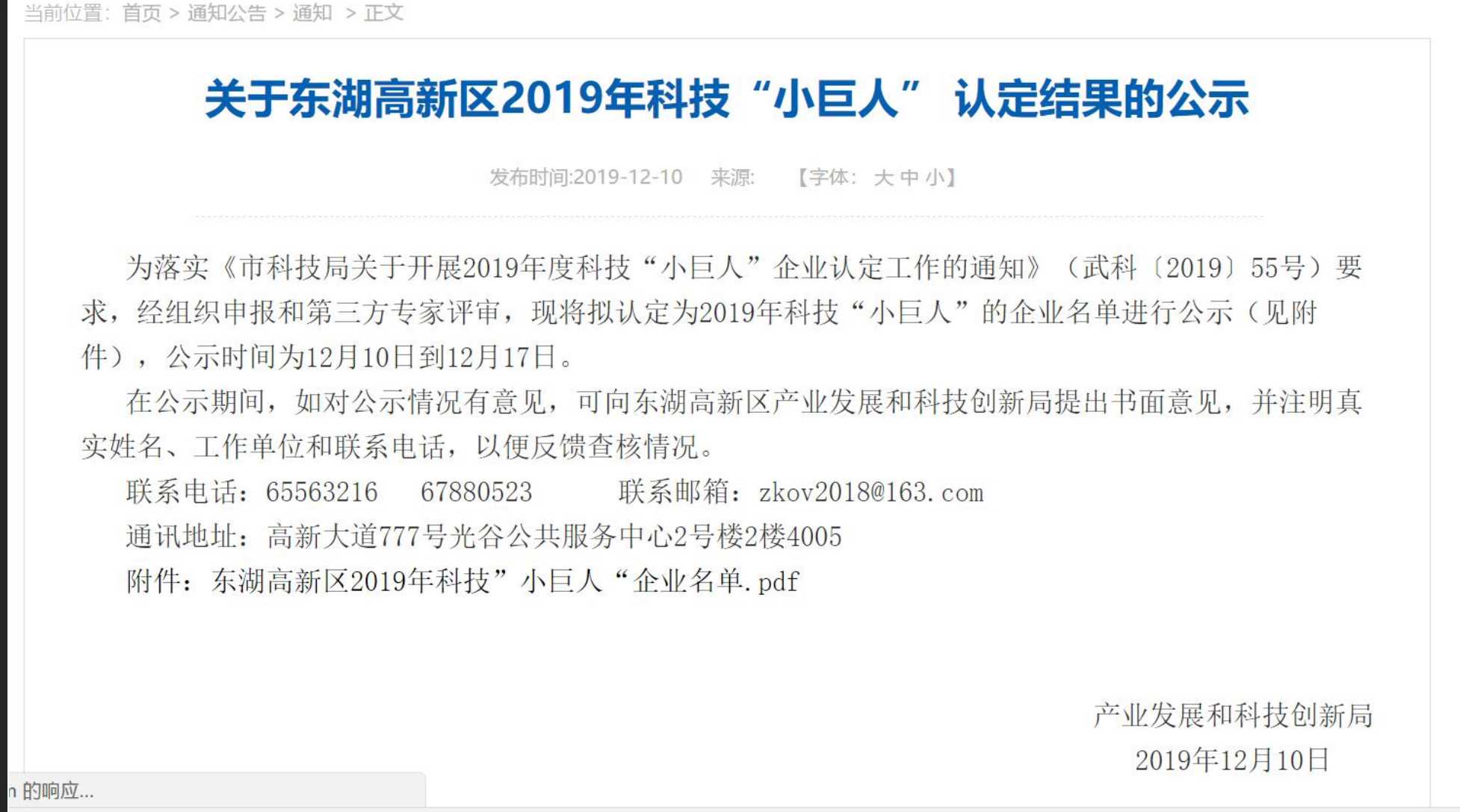 2019年科技“小巨人”(光谷環(huán)保)